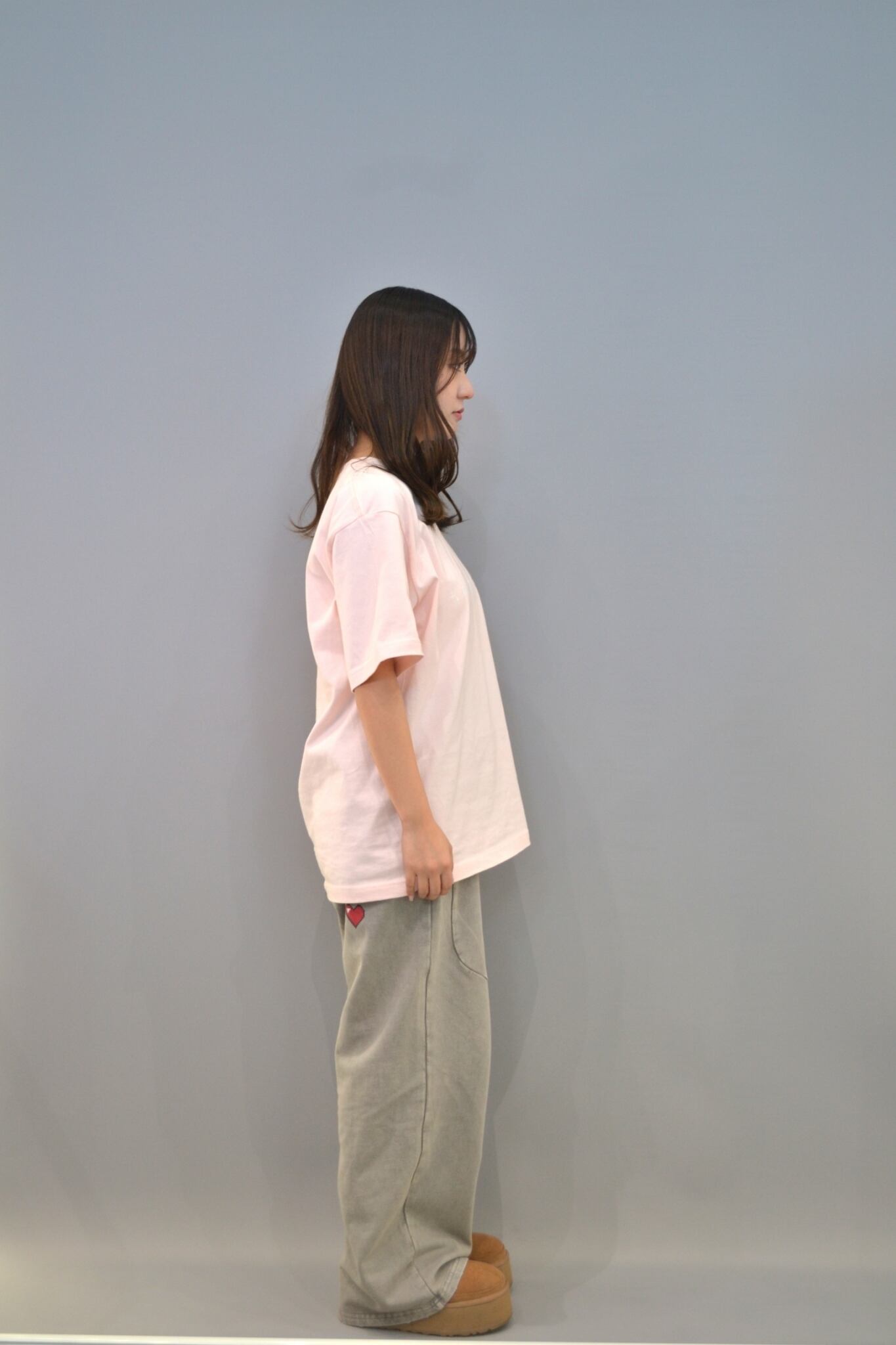 ・ピンク色のTシャツにメカニックなフォントで白色のブランド名と星とダイヤをプリントし可愛く仕上げました!